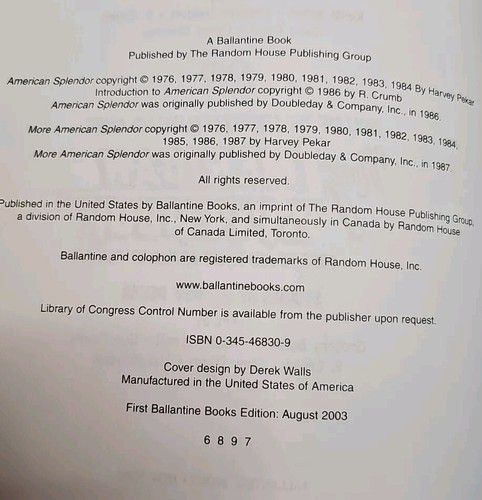 Comic Stories: The Harvey Pekar Name Story, The Young Crumb Story, A Fantasy, Ozzie Nelson's Open Letter to Crumb, How I Quit Collecting Records and Put Out a Comic Book With the Money I Saved, The Day Before the Be In, Awaking to the Terror of a New Day, Awaking to the Terror of the Same Old Day, Short Weekend: A Story About the Cosmic and the Ordinary, A Compliment, Hustlin' Sides, Jack the Bellboy and Mr. Boats, Read This, Standing Behind Old Jewish Ladies in Supermarket Lines, Ridin' the Dog, An Argument At Work, Working Man's Nightmare, Freddy Visits for the Weekend, Ripoff Chick, One Good Turn Deserves Another, Leonard Marie, Noah's Ark, Class Antagonism, Emil, The Maggies (Oral History), Kaparra, American Splendor Assaults the Media, Grubstreet, U.S.A., Hypothetical Quandary, Pickled Okra (Okry), Lunch With Carmella, Rollins On Time, Visualize, Actualize, Realize, Guerrilla Theatre July '74 - On the Corner, On the Corner... A Sequel June, 1976, Roller Coaster to Nowhere, Stetson Shoes, Mrs. Roosevelt and the Young Queen of Greece, Busman's Holiday, Miracle Rabbis (A Doctor Gesunheit Story), An Everyday Horror Story, Alice Quinn, I'll Be Forty-Three on Friday (How I'm Living Now), Jury Duty, A Ride Home, Free Ride, Old Cars and Winter, A Marriage Album, Violence, History Repeats Itself, A Matter of Life and..., Common Sense, Mr. Boats' Miracle Cure