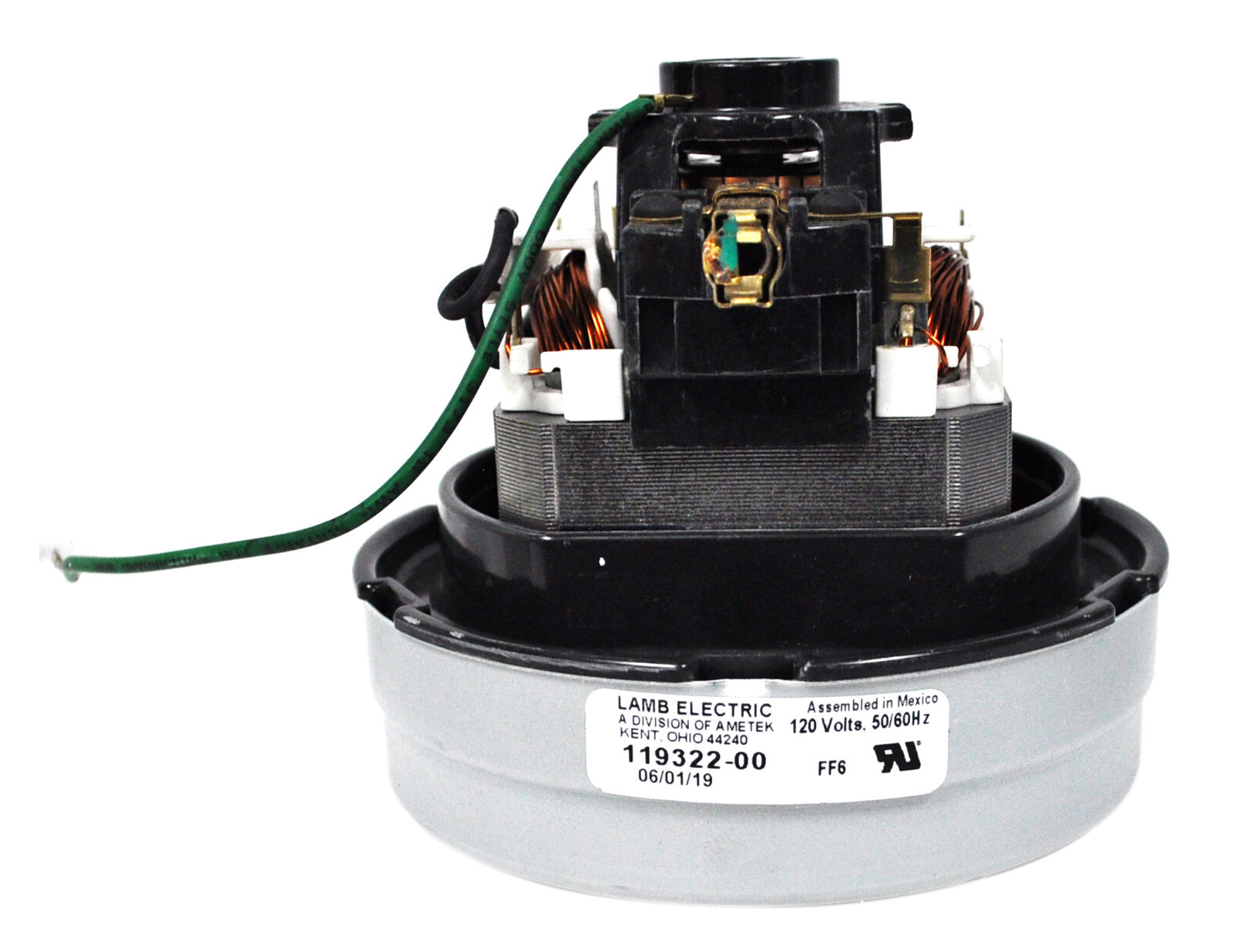 Ametek Lamb 5.1 Inch Single Stage 120 Volt B/B Peripheral Bypass Vacuum Motor 119322-00 Motor Specs: Motor Type: Bypass, Discharge: Peripheral, Bearings: Ball Bearing/Ball Bearing, Sealed Vacuum: 78.8 inches, Maximum Air Watts: 314, Maximum Air Flow: 125.8 CFM, Maximum Amps: 8.40, Motor Speed: 33,554 RPM. 5.1 Inch 1-Stage 120 Volt B/B Peripheral Bypass Motor. 120 Volts, 50/60Hz. Manufacturer Part Number: 119322-00 L-119322-00