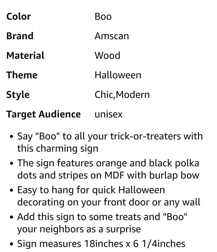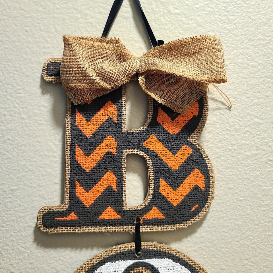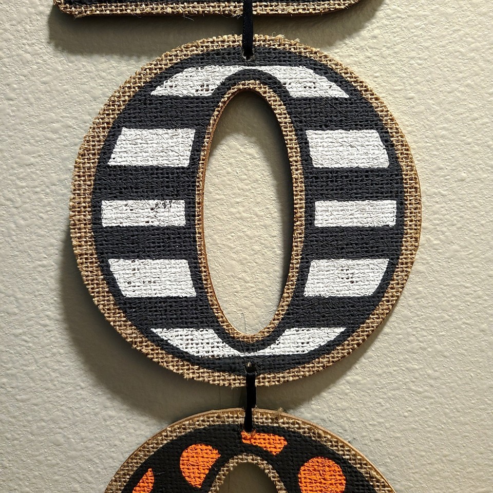Amscan ?BOO? Vertical Halloween Sign ? Chevron, Stripes Polka Dots ? Burlap Bow ? Excellent Condition Bring festive charm to your Halloween decor with this Amscan BOO Specialty Triple Sign. This high-quality hanging decoration features: Vibrant Halloween Colors ? Orange, black, and white in bold chevron, stripe, and polka dot patterns Rustic Burlap Bow Ribbon ? Adds a warm, farmhouse-style touch Stacked Vertical Design ? The letters ?B?, ?O?, ?O? are arranged vertically for maximum visual impact Durable Fiberboard Construction ? Lightweight yet sturdy, made to last for many Halloweens Perfect Size ? Approx. 18" tall x 6" wide2 Easy to Display ? Hang on doors, walls, or windows for a spooky welcome Condition: This sign is in amazing, clean condition ? no chips, cracks, or stains. Colors are bright, patterns are crisp, and the burlap bow is intact. Comes from a smoke-free, pet-free home. Why You?ll Love It: Whether you?re hosting a Halloween party, decorating your porch, or adding seasonal flair indoors, this Amscan BOO sign delivers instant festive vibes. It?s reusable year after year.