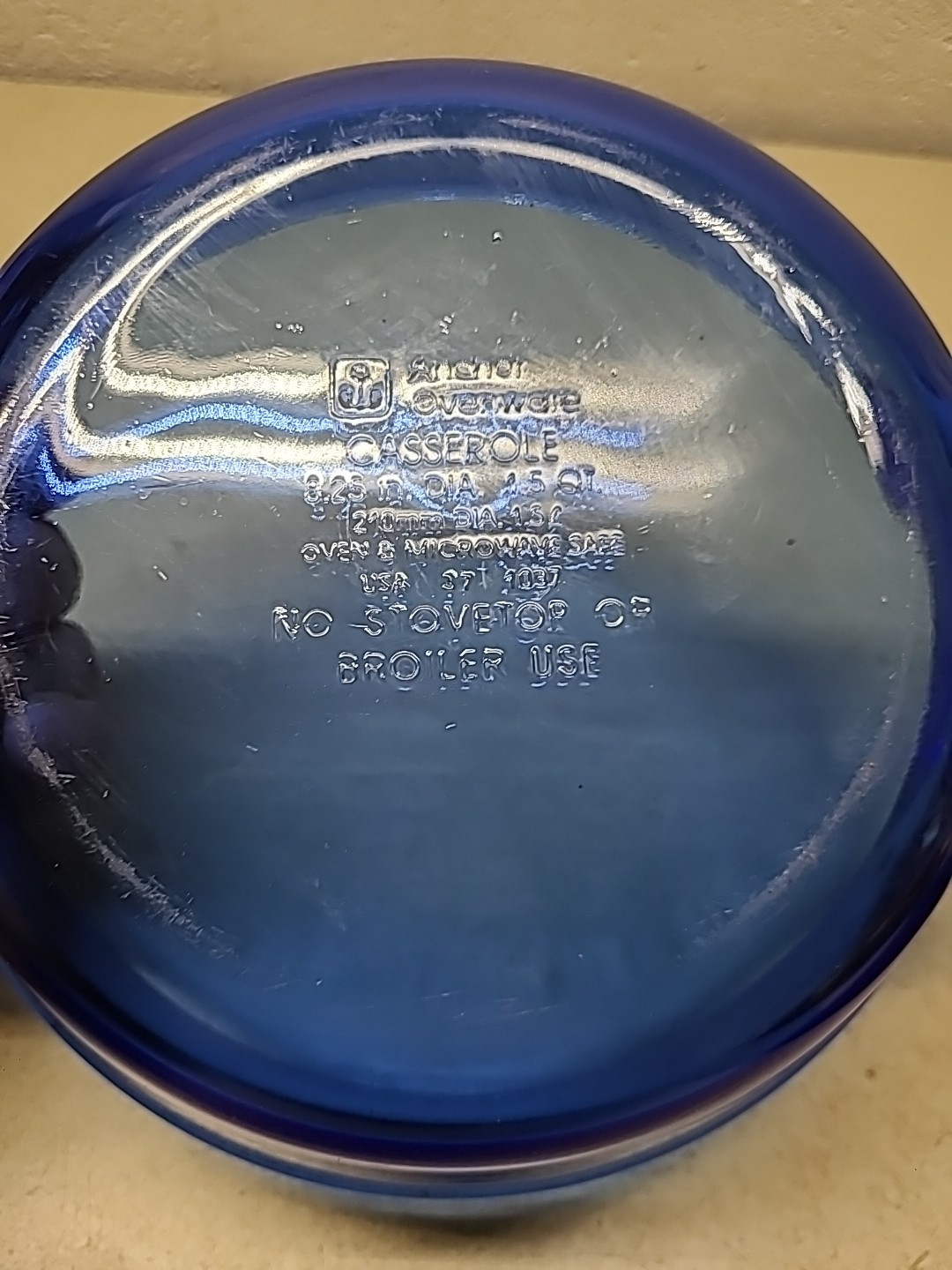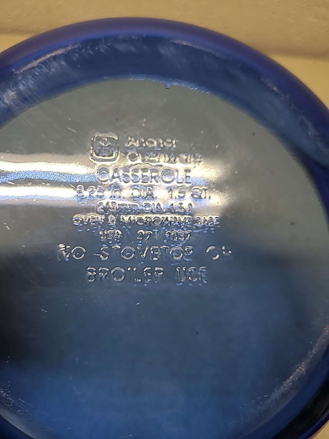 - Anchor Hocking Ovenware Cobalt Blue Glass 1.5 QT 9" Round Casserole Dish