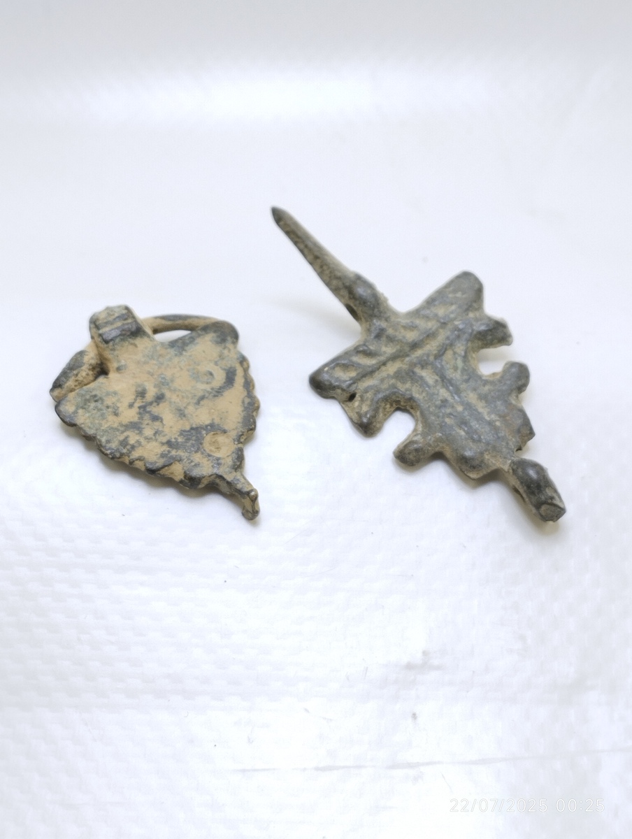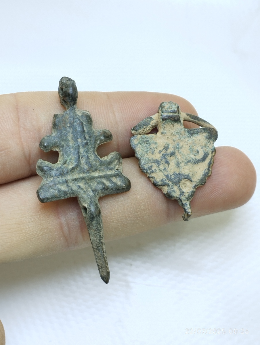 Both talismans were traditionally used as protective vessels, absorbing and redirecting negative energy while strengthening the aura of the keeper. Their aged surfaces and symbolic shapes show signs of long spiritual use.