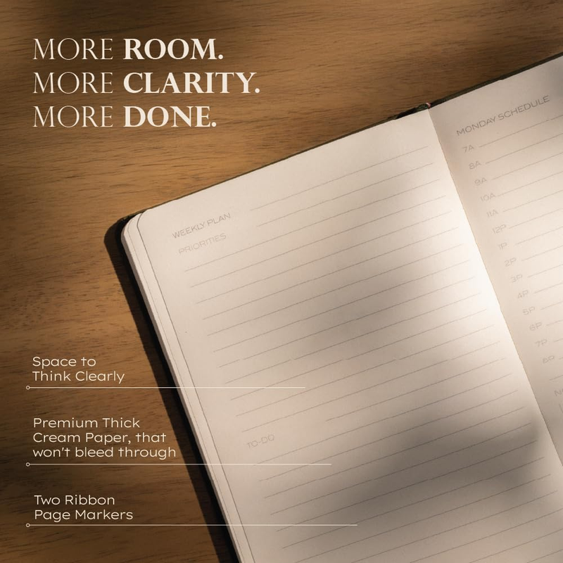 High-Quality Writing Experience: Enjoy a flawless writing experience without the worry of bleeding, thanks to 100gsm Cream Paper, perfect for markers highlighters. This day planner notebook elevates note-taking and planning, making it an indispensable tool for professionals.