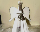 This new adorable Angel Candle Holder will be a piece to pass down through the generations. This well made metal angel is a sturdy yet stunning addition to your holiday decor. Made of metal and has a rustic white finish, it holds 1 small candlestick and and i am including a new small gray battery candle with this with timer and requires an 1 AA battery that is not included, this Angel with candle would accent any room nicely all year round or for holidays, and makes a nice gift item.
