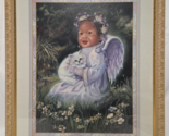 - Angel & Kitty - Original Print by Dallas Woodcraft 22"H x 18"W Gold Frame