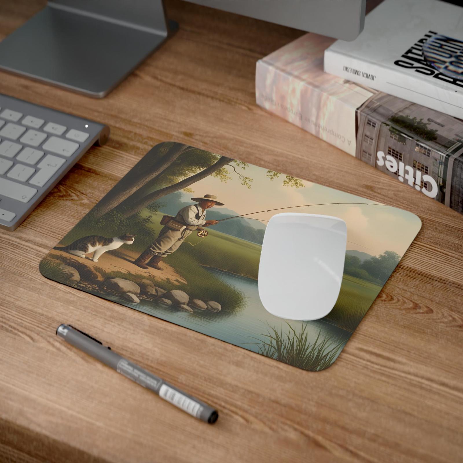 Angler's Haven Mouse Pad, Fishing Desk Accessory, Cat Lover Gift, Nature Lover H