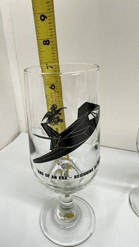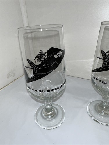 Set of 6. This glass set is a must-have for any fan of Anheuser-Busch's iconic brand, Budweiser. With a sleek Stealth Bomber design and the classic A Eagle logo, these glasses are perfect for any occasion. Made for collectors and beer enthusiasts alike, they are brand new and in excellent condition.