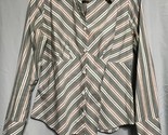 Elevate your wardrobe with this beautiful Ann Taylor Petites button-up top. The striped pattern and multicolor scheme make it a versatile piece that can be easily incorporated into any outfit. The long sleeve design adds a touch of sophistication, while the size 6P fits comfortably for a flattering silhouette. Perfect for any occasion, this top is a must-have addition to any woman's clothing collection.