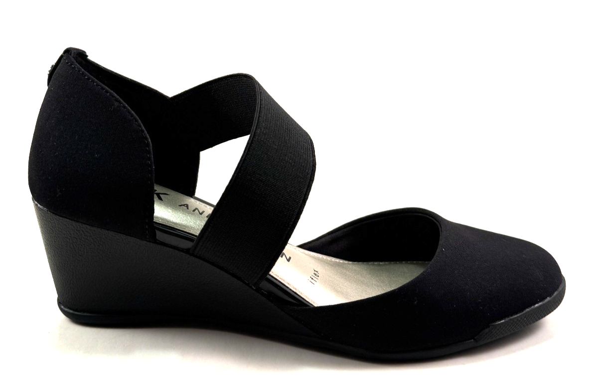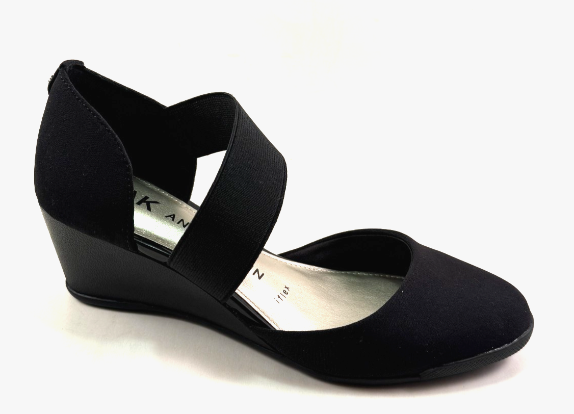Anne Klein iflex Trallie Black Round-toe Slip-on D'Orsay Wedge Pumps