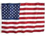 3' x 5', tough Tex us flag, 100% 2-Ply, spun woven, polyester fabric resists high winds, open weave reduces fabric stress for longer wear, sewn stripes embroidered stars, the longest lasting flag made, 1 year colorfast guarantee, clamshell packaging.