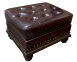 Features: Tight Seat Cushion (NO Storage) Base Molding (Poly-Resin), Button Tufted, Nailhead Trim, Armless Seat: Pocket Coil; Inside Frame: Wood (Hardwood+Board), Box Cushion Wooden Pumpkin-Bun LEG Material: Espresso Top Grain Leather Match (Vintage Pattern) Set Includes: One (1) Ottoman