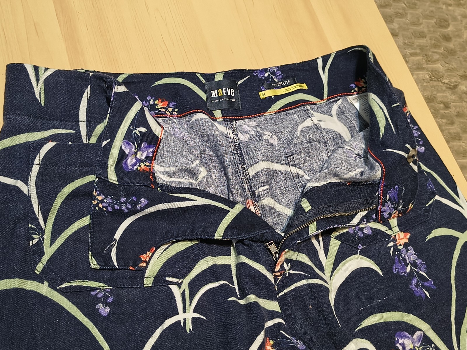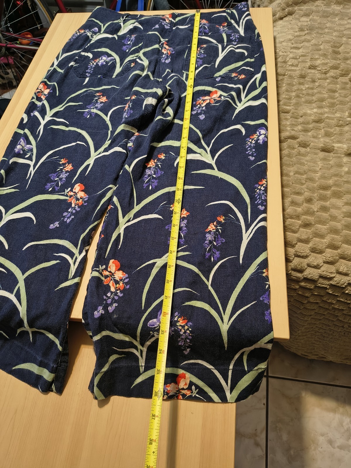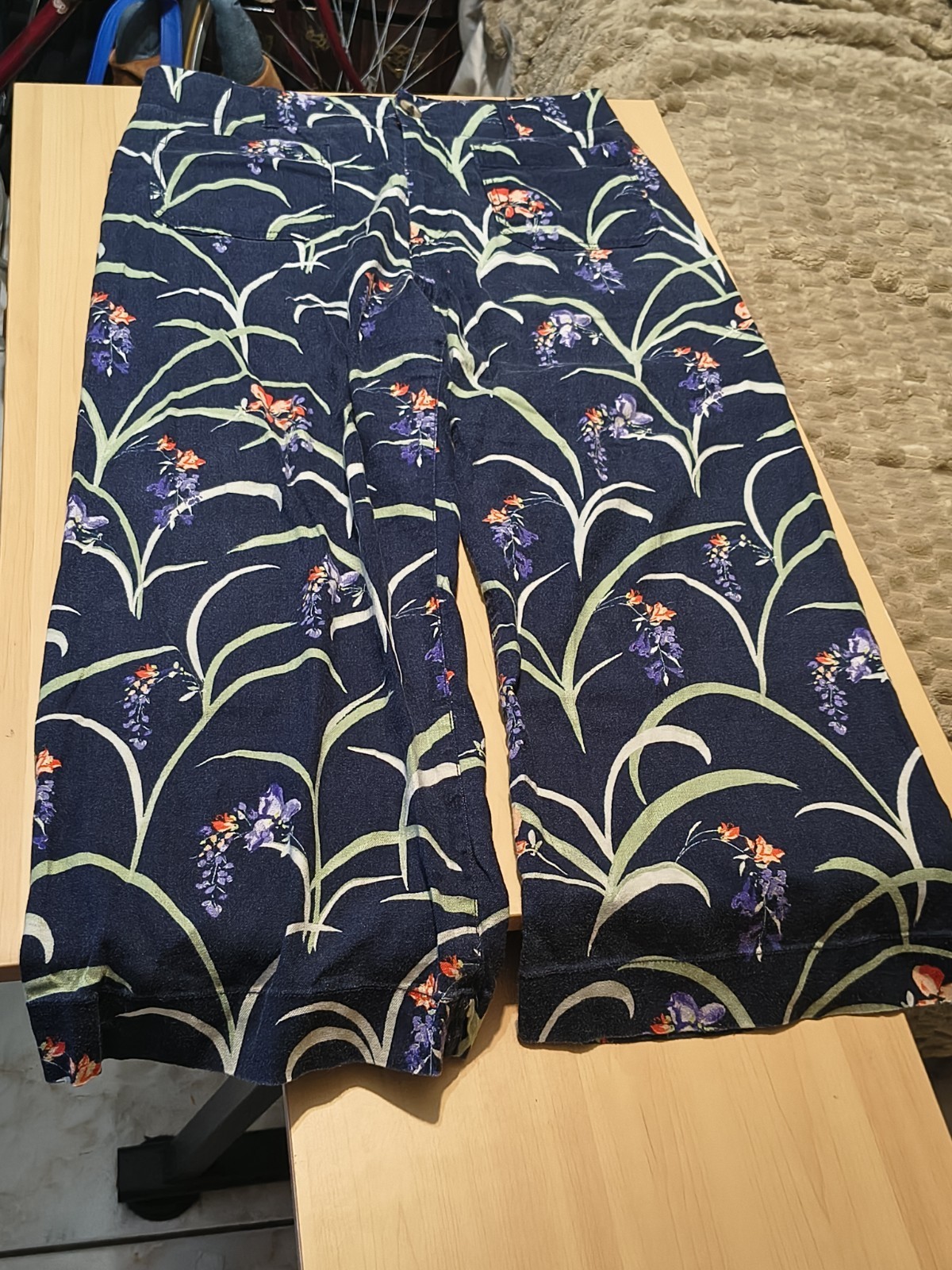 - ANTHROPOLOGIE MAEVE THE COLETTE CROP WIDE LEG LINEN PANTS NAVY FLORAL SZ 31