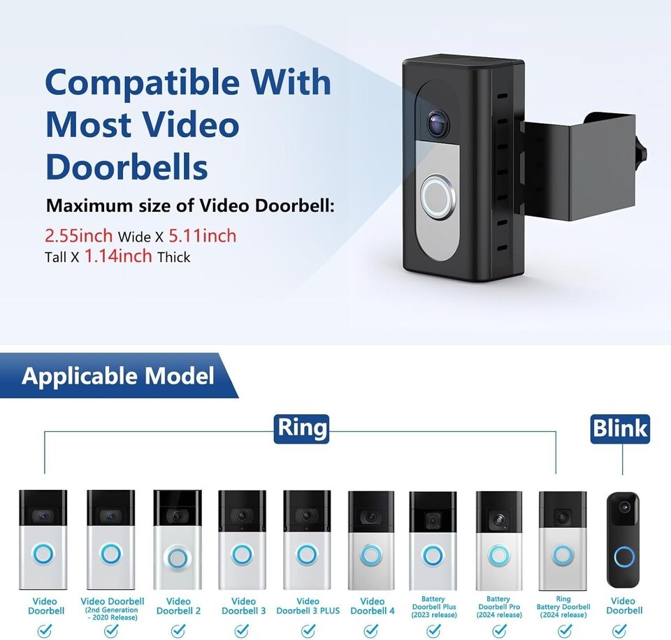 - Anti-Theft Adjustable Video Doorbell Mount for Ring/Blink - Secure Your Home