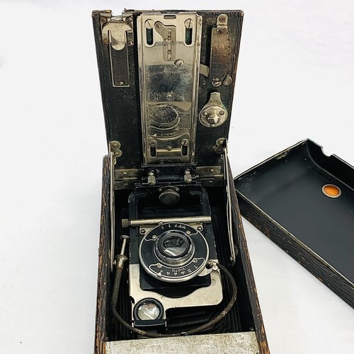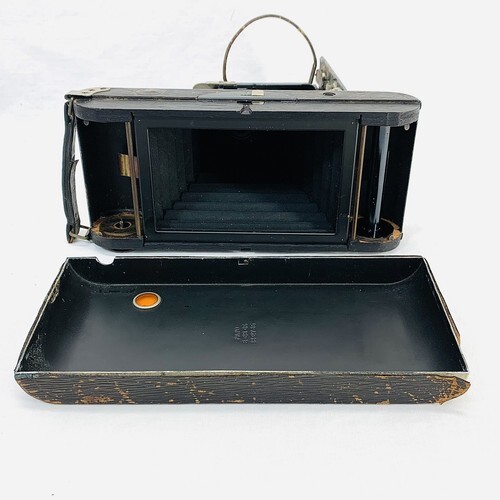 ? Early 1900s Seneca Chief No. 2 folding bellows camera ? Made by Seneca Camera Mfg. Co., Rochester, New York, USA ? Features Bausch Lomb Victo shutter (period-correct) ? Lens cells appear unmarked, typical for this model ? Wood body with metal hardware and leather bellows ? Untested ? sold as-is for parts, repair, or display ? Some finish wear, edge scuffs, and signs of age ? Excellent piece for collectors or vintage photography display Note: Shutter marked ?B L Victo.? Item untested and sold as-is. See all photos for details. Seneca Chief No 2, antique folding camera, Bausch Lomb Victo shutter, early 1900s camera, Rochester NY, bellows camera, wood brass camera, antique photo equipment, display prop, collectible camera Seneca Chief No 2, antique folding camera, early 1900s photo equipment, Victor lens, Rochester NY, bellows camera, wood brass camera, display prop, collectible antique camera, photography history