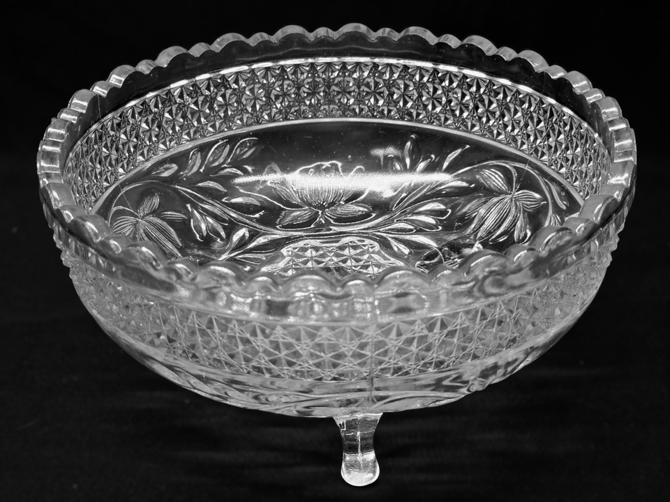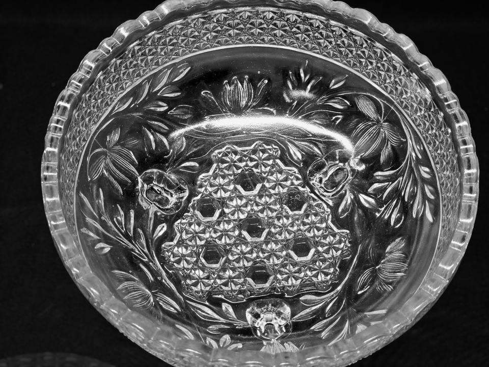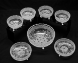 - Antique 1913 INDIANA GLASS 7-Piece Footed Bowl Set ROSE POINT BAND Fruit Nuts