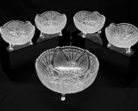 Antique set of 5 EAPG Rocket bowls by Indiana Glass in excellent condition. Great clarity, no evidence of damage or wear. The dessert or berry bowls measure about 4" in diameter, and the larger serving bowl is about 8". Circa 1915.