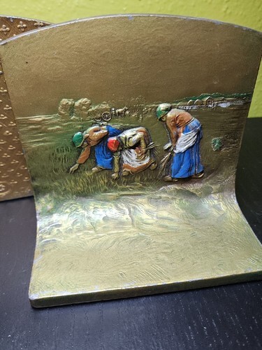 Antique 1920s Kroheim & Oldenbusch The Gleaners Heavy Polychrome Spelter Bookend