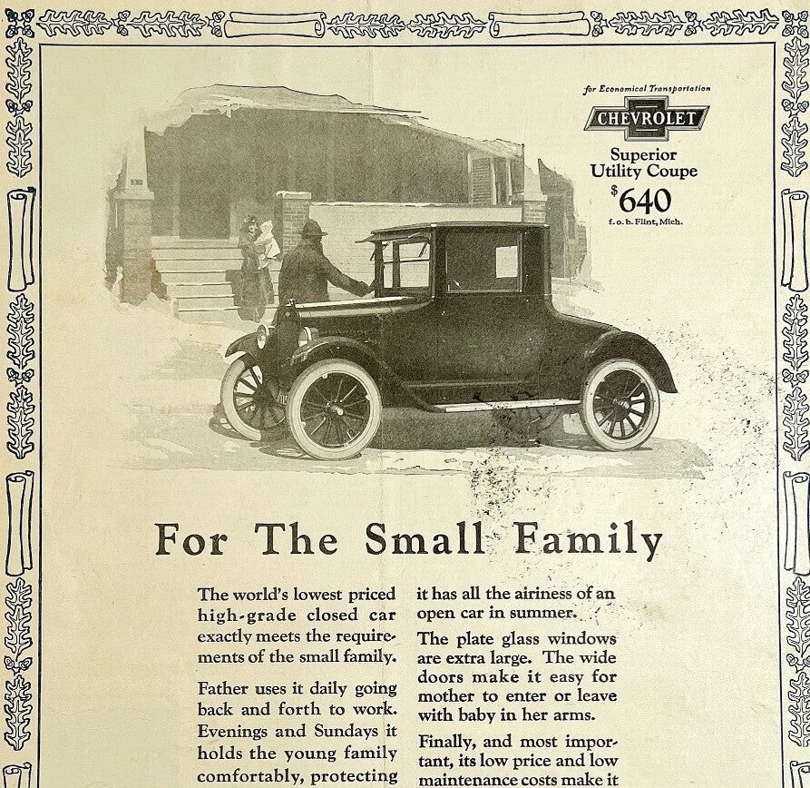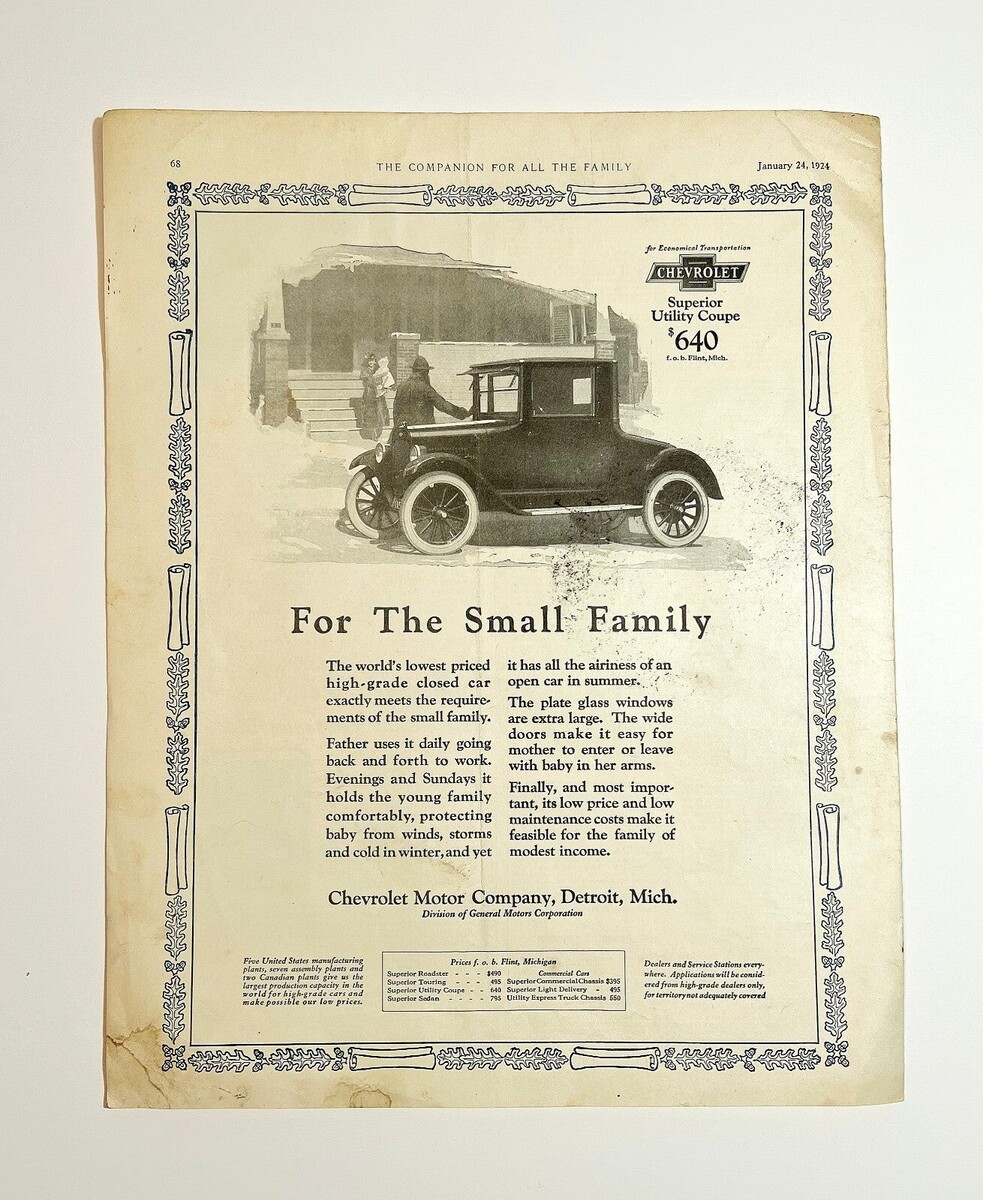 Antique 1924 Chevrolet Coupe XL Advertisement Automobilia Ephemera 14 x 11.25