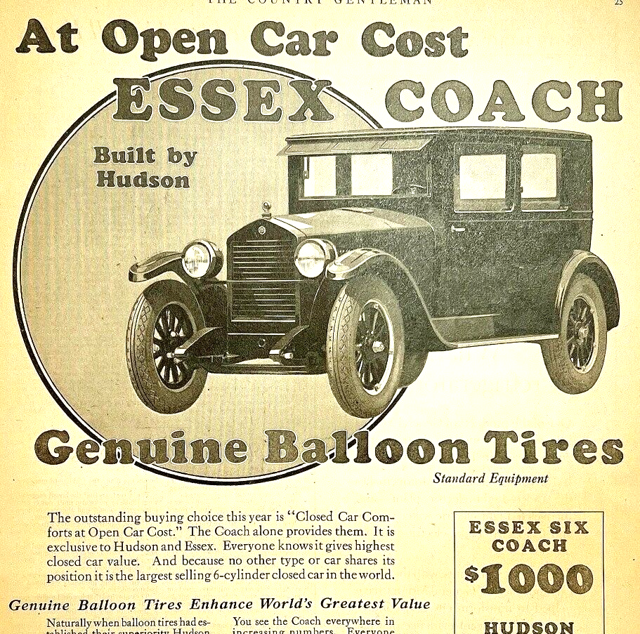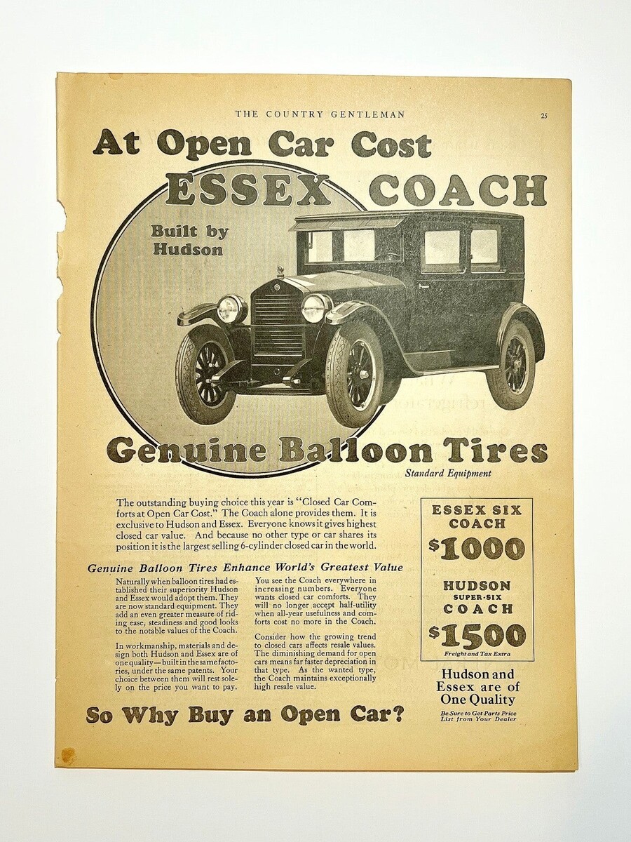 Antique 1924 Essex Coach Hudson XL Advertisement Automobilia Ephemera 14 x 11.25