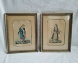This is a antique watercolor paintings showing two women wear traditional dresses. We believe they are kost likely of Balkan/Bosnian/Serbian descent. They not signed. Paper shows age related yellowing. Also one of the paintings has some spotting on the top corner. Oroginal frames they came in with from the estate sale. Approximately made between 1860-1910.