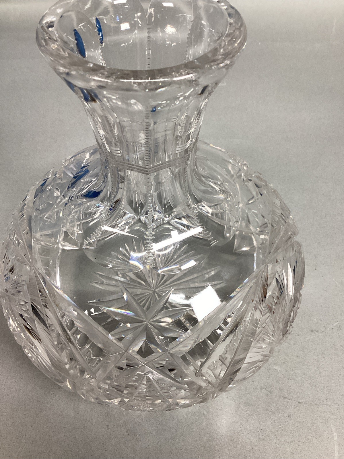 - Antique American Brilliant Cut Glass Crystal Wine Water Decanter Carafe - 7.25”H