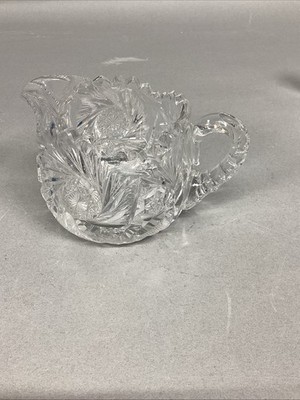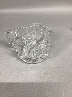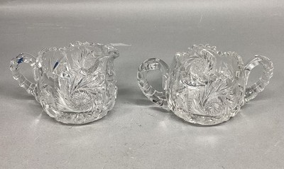 - Antique American Brilliant Period Deep Cut Crystal Glass Creamer & Sugar