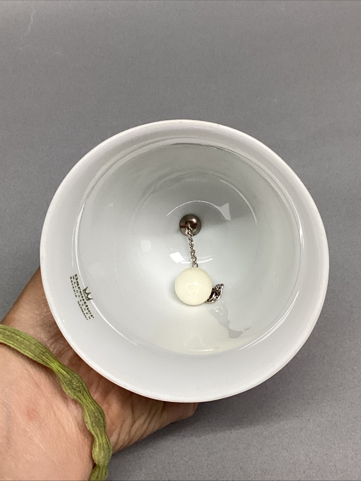 Antique Bareuther Waldsassen Bavaria Germany Porcelain Floral Dinner Bell. There is a miniscule chip on the edge of the bell. Hard to see but I?m trying to show it in the last 2 pictures. This item measures 7?Hx3.25?D. The bell works and makes a semi-high pitched sound.