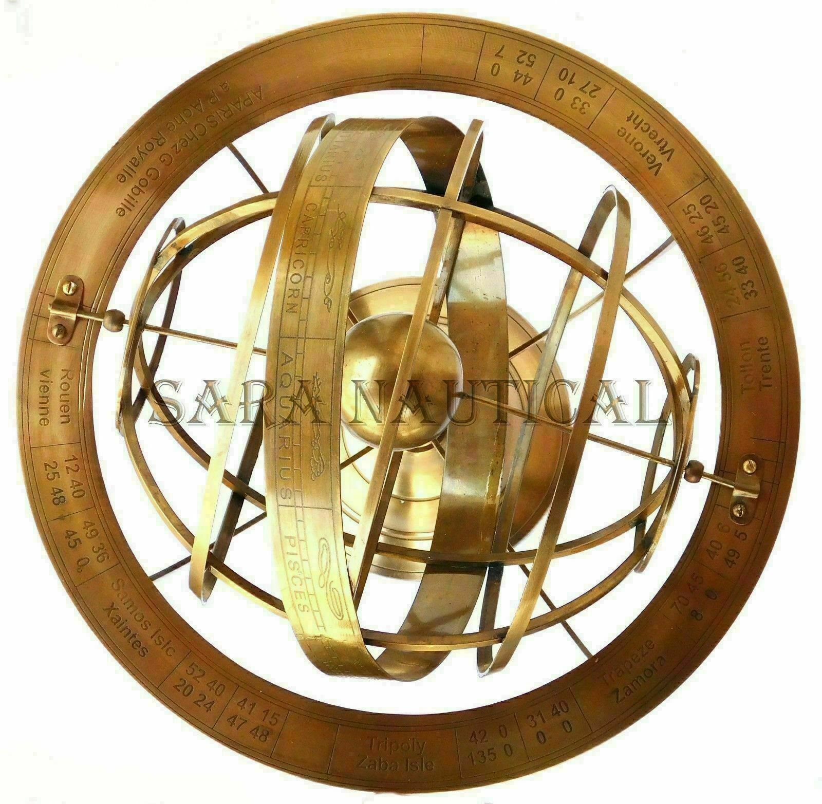 - Antique Brass Armillary Sphere Engraved Nautical Astrolabe 18'' Armillary Rashi