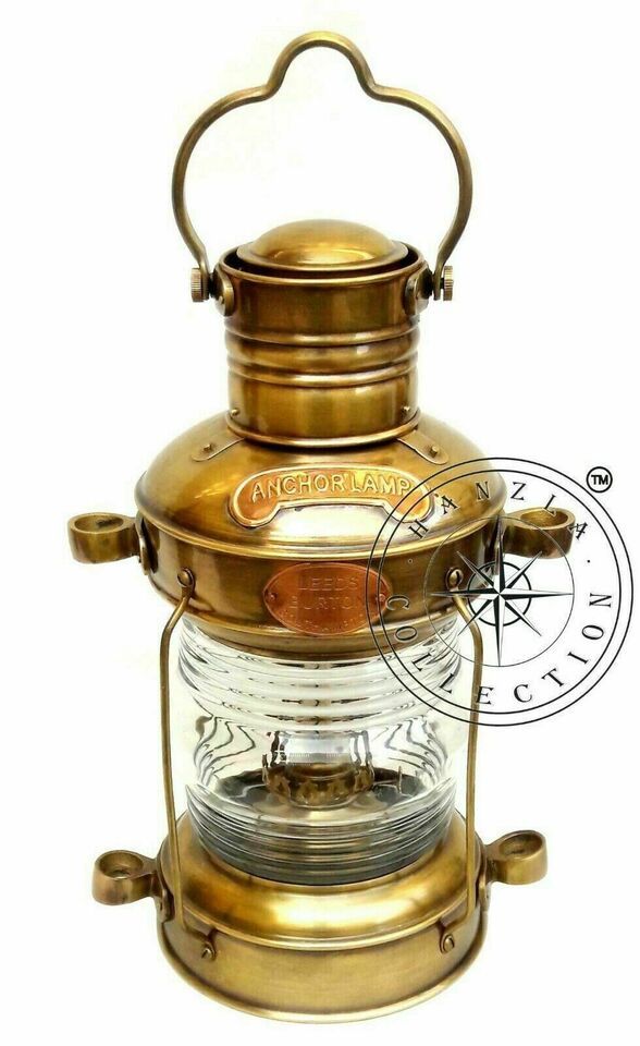 - Antique Brass Boat Lantern 14" Nautical Maritime Anchor Lamp Leeds Burton