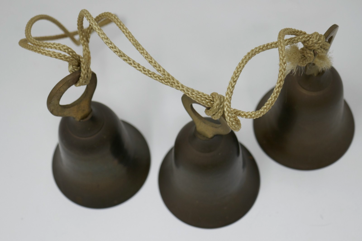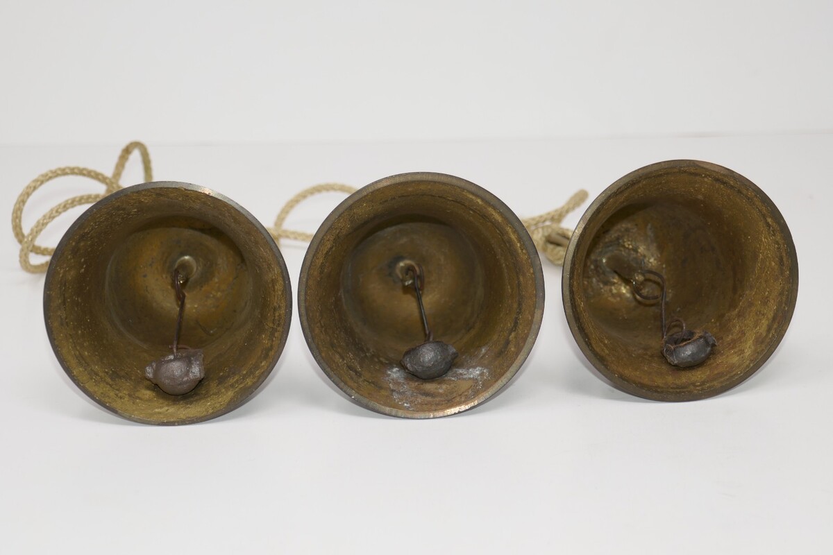 This is a set of antique brass cowbells with three different notes. The cowbells measure approx. 4.25" tall and 2.5" wide. These collectible cowbells are not only functional but also add a touch of charm and nostalgia to any space. Perfect for enthusiasts of vintage items or those looking to add a rustic accent to their home decor. See photos for item condition, this is a picture of the actual item. All reasonable offers considered!! **Payment** We do expect payment within 48 hours of the purchase. If for some reason you need a couple of extra days, please let us know. **Feedback** Once you have received your item, if you are satisfied, please leave feedback. We are happy to leave feedback for you after you have left feedback for us to let us know that you have received your item and the transaction is complete. Please contact us before leaving feedback if there is a problem. **International Buyers ? Please Note** Import duties, taxes, and charges are not included in the item price or shipping cost. These charges are the buyer's responsibility. Please check with your country's customs office to determine what these additional costs will be prior to bidding or buying. Check out our store for more deals!!