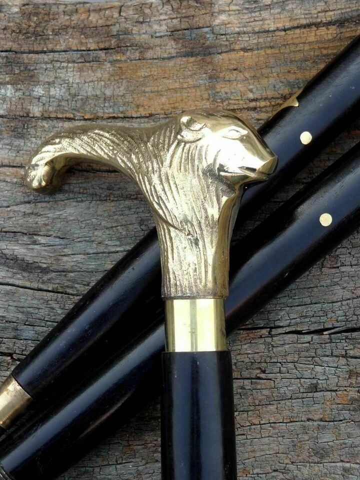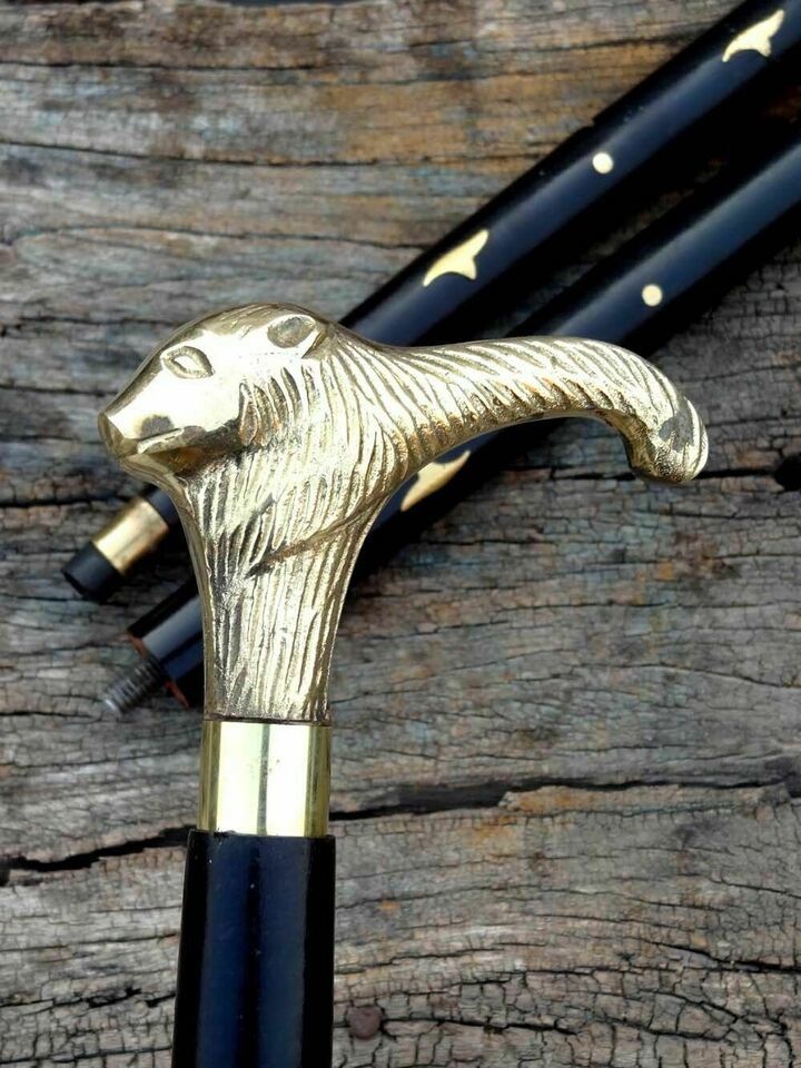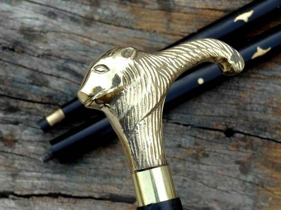 - Antique Brass Designer Lion Head Handle Walking Wooden Stick Cane Vintage Gift