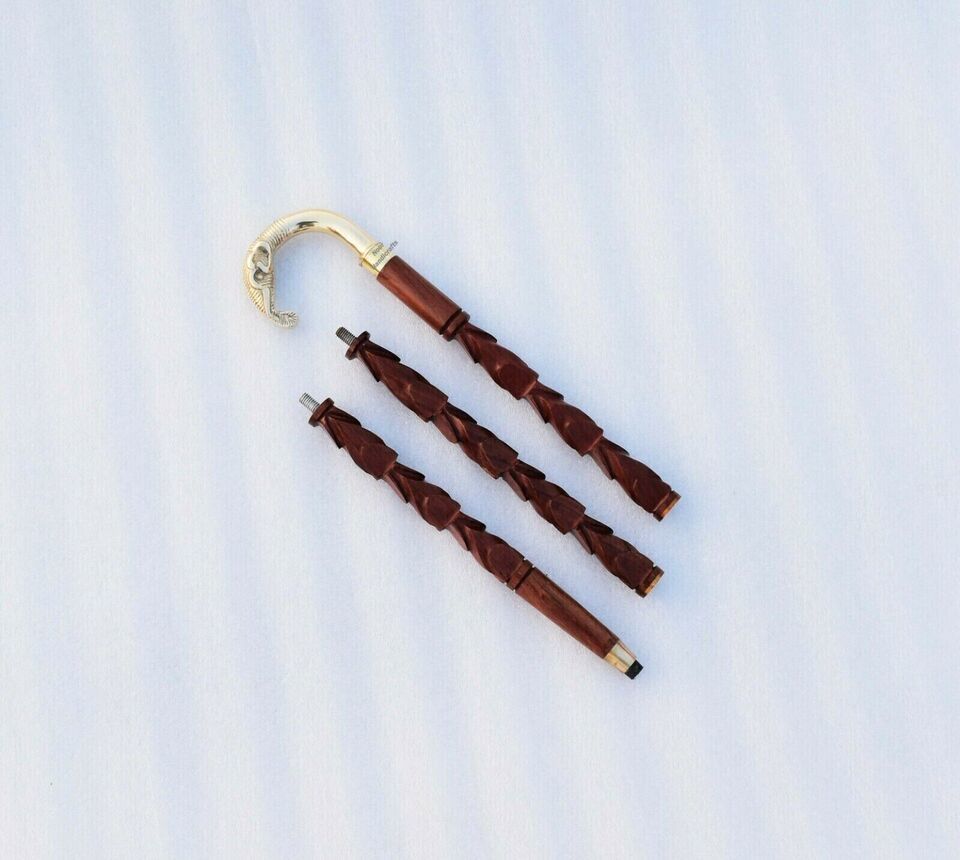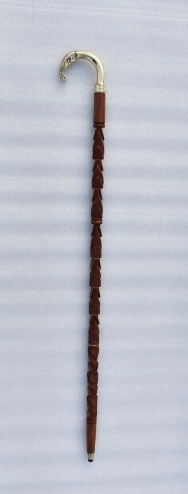 - Antique Brass Elephant Chrome Head Handle Round Wooden Walking Stick Cane Style