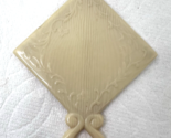 Primary image for Antique Celluloid Tiny Floral Hand Beveled Mirror w Heart Handle 3 1/4 x2 3/4