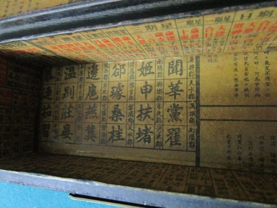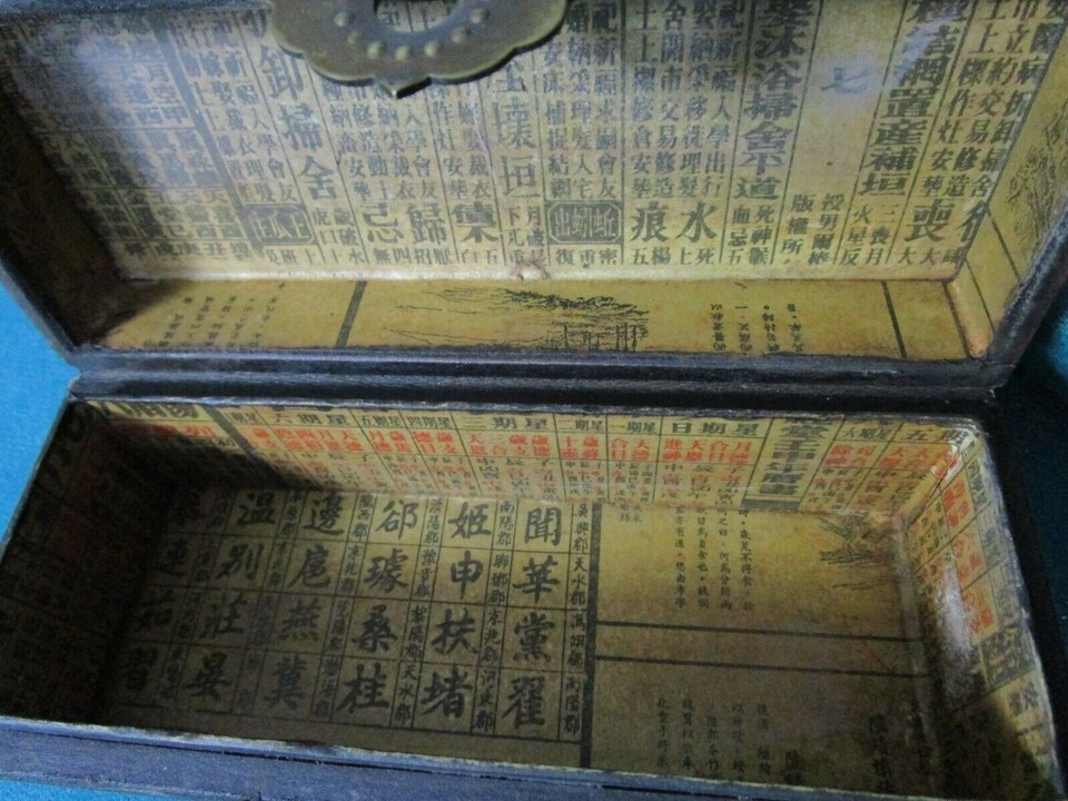 - Antique Chinese Wood Black Beige Golden Lacquer Box Newspaper Inside Pick1