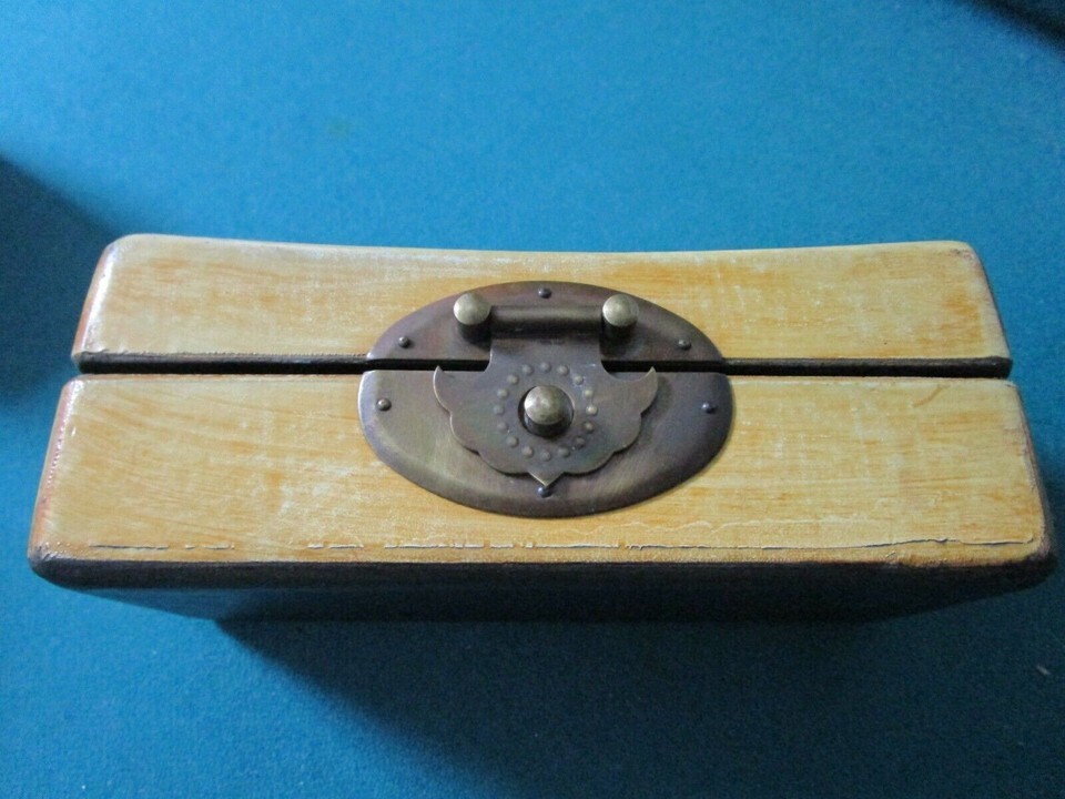 ANTIQUE CHINESE Wood BLACK BEIGE GOLDEN Lacquer Box newspaper inside PICK1