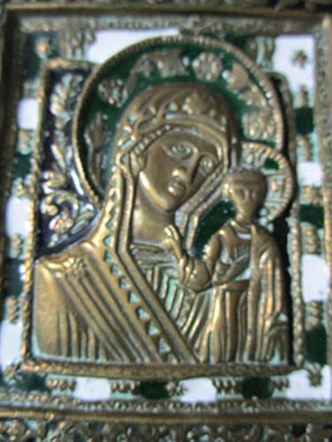 ANTIQUE CLOISONNE ORTHODOX ICON MARY AND JESUS 3 1/2 X 4 1/2" VERY GOOD CONDITION, SOME LIGHT SURFACE SCRATCHES COMMENSURATE WITH AGE