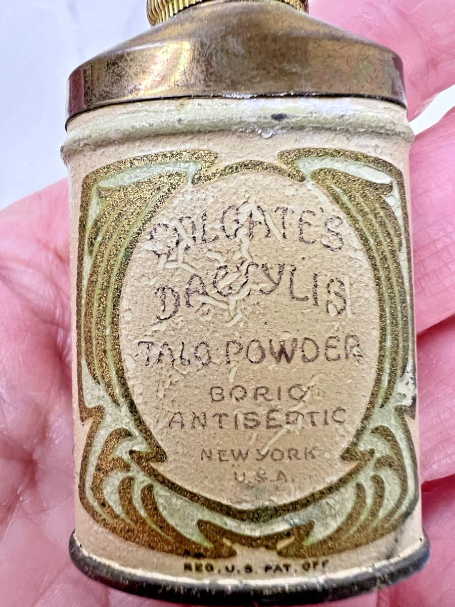 Antique Colgate's Dacrylis Talcum Powder Sample Size Tin 2 1/8" The paint is crackled but overall sweet