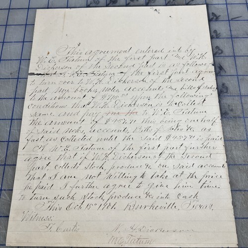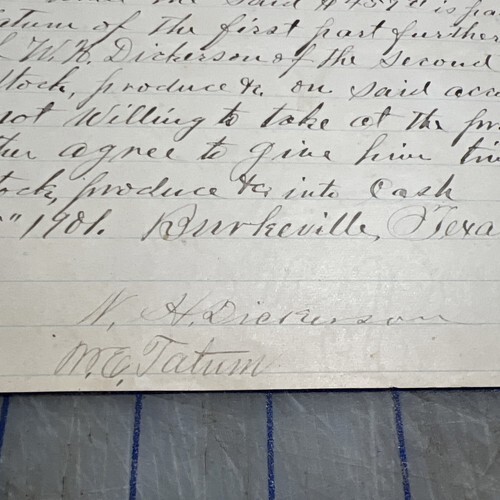 - Antique Document Burkeville Texas 1901 Signed Curtis Tatum & Dickerson