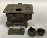 - Antique Eagle Cast Iron Toy Stove With 2 Pots - Lancaster Brand - 9x6x6.5”