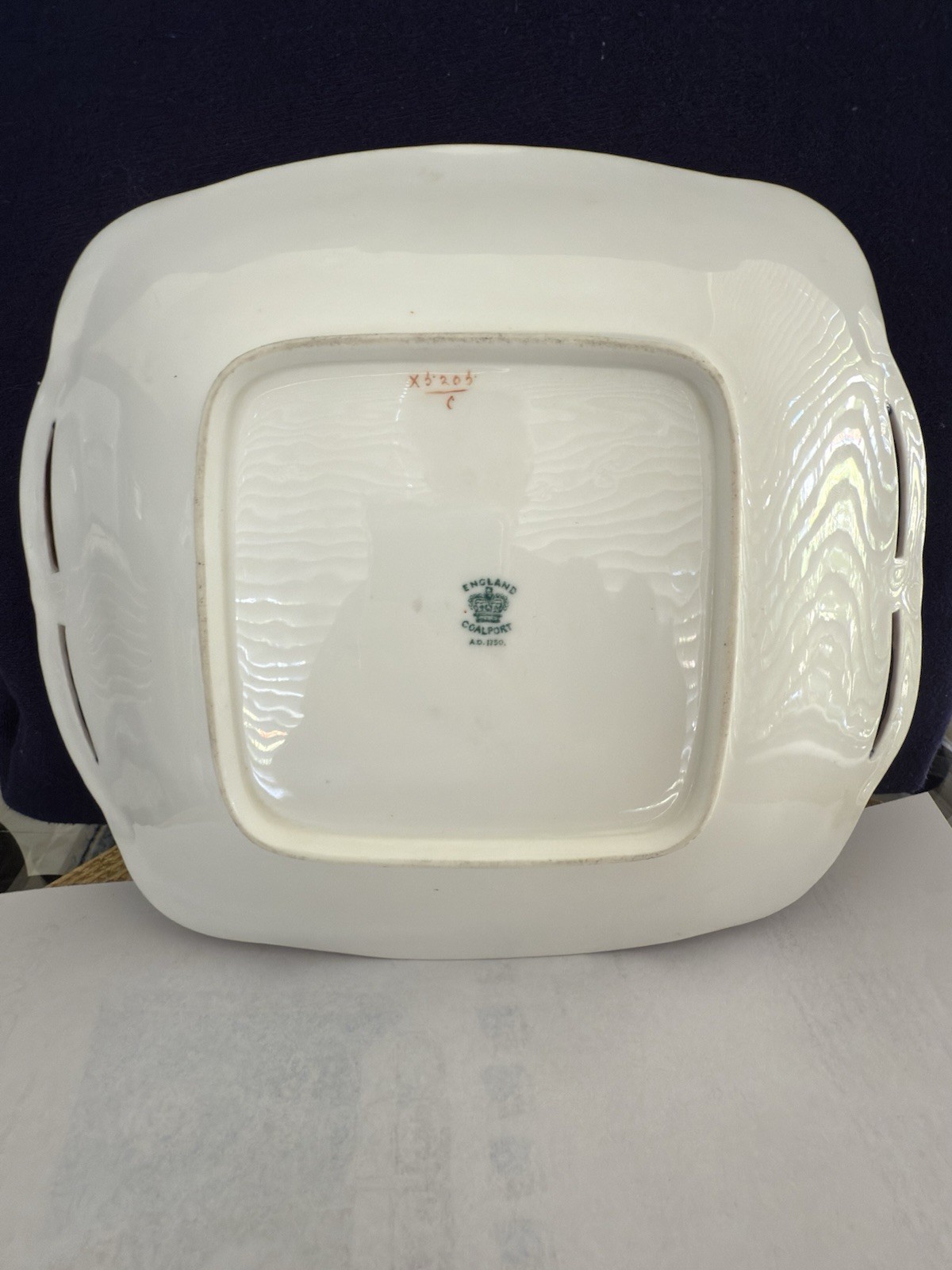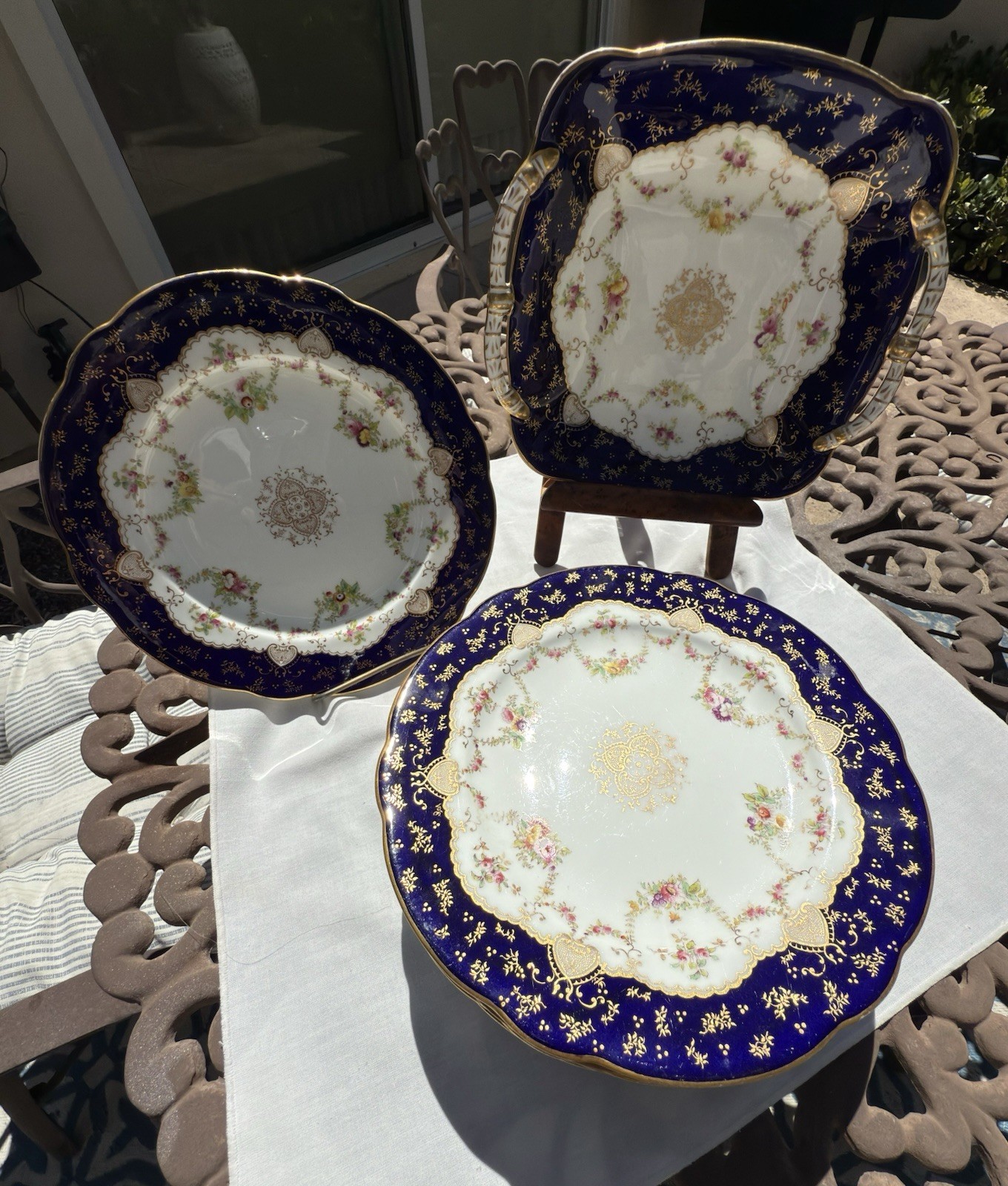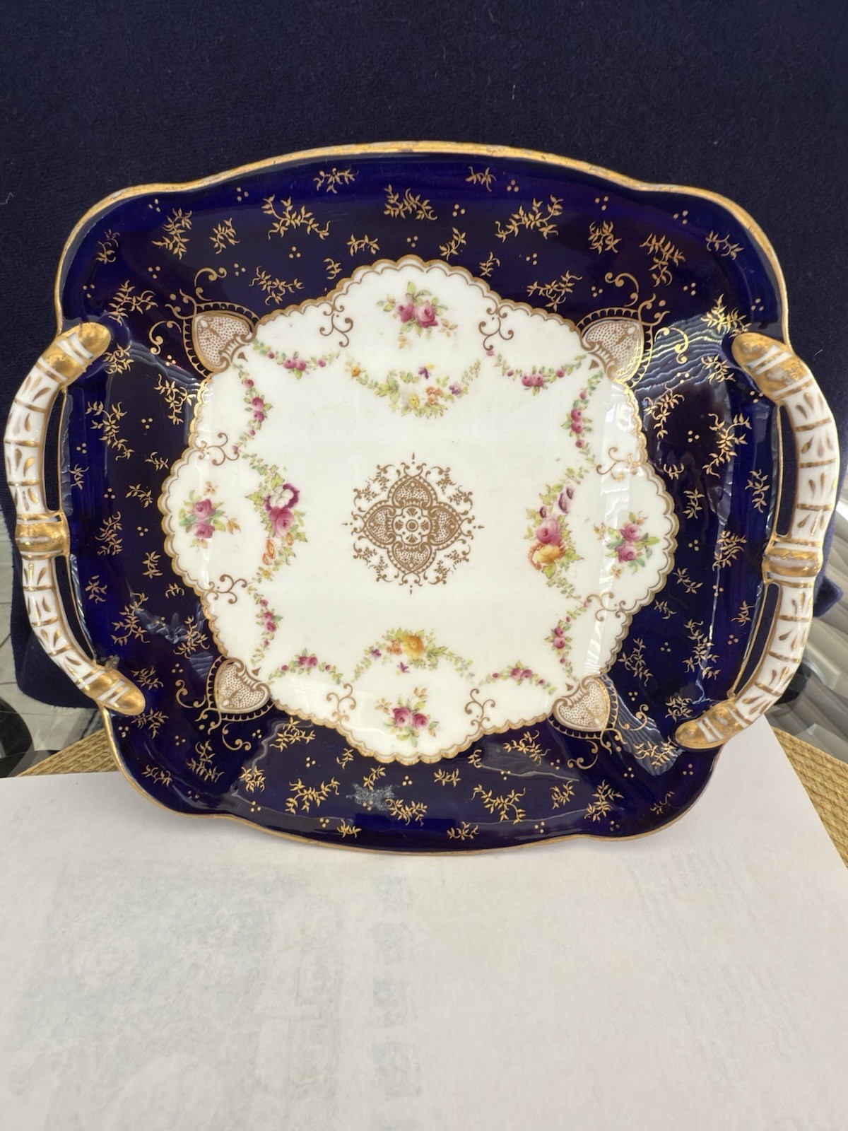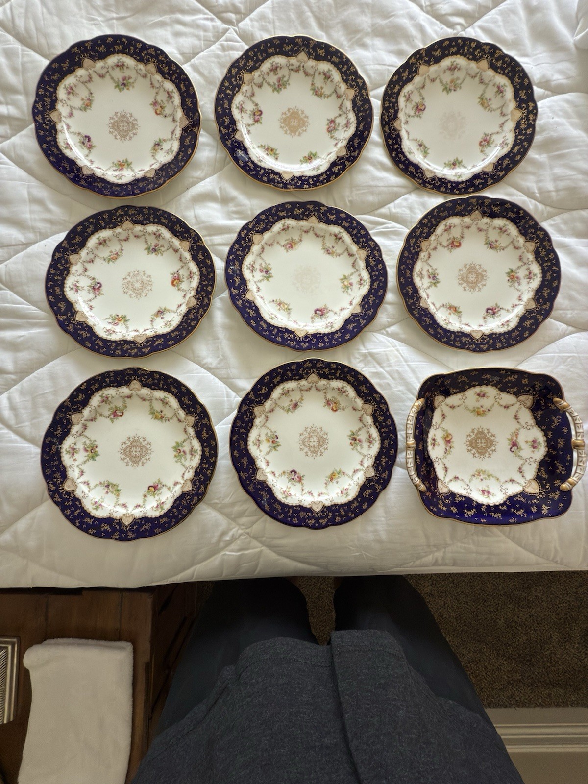 - Antique English COALPORT Porcelain 8 Cobalt blue dessert plates with Serving pl