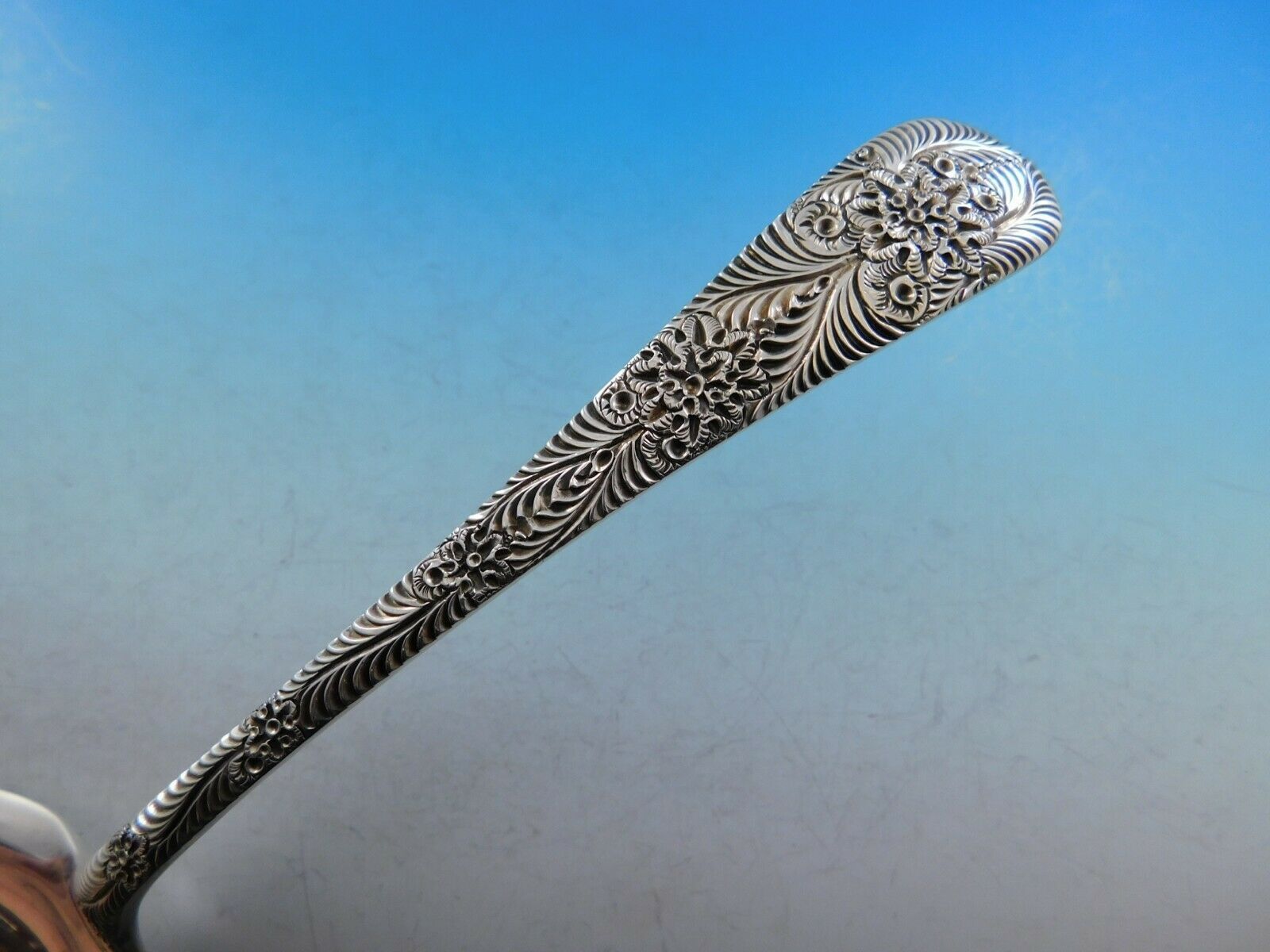 Lovely sterling silver Pie Server measuring 10 1/4" in the pattern Antique Engraved aka Custom Engraved by Tiffany Co. This pattern is exceedingly rare with intricate hand engraved design. This piece is completely sterling and has a lovely plain blade. It is not monogrammed and is in excellent condition.