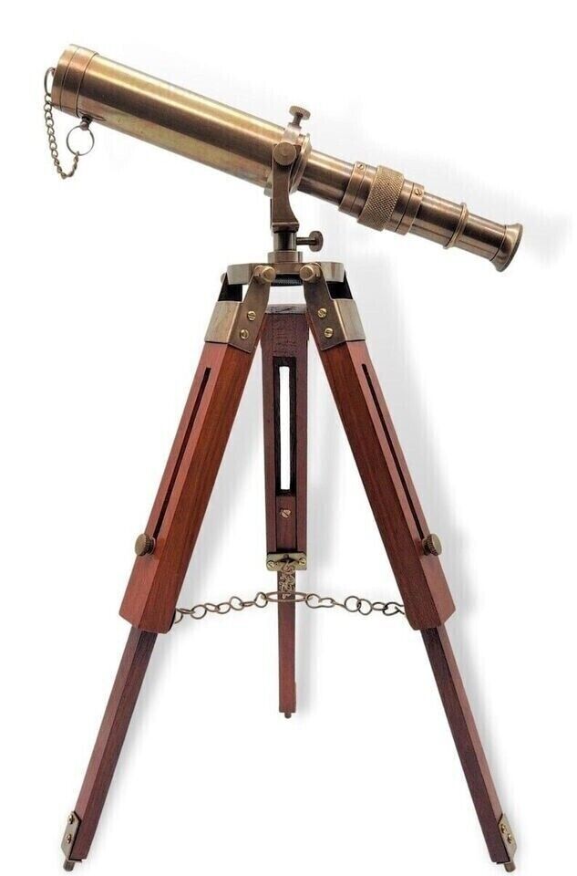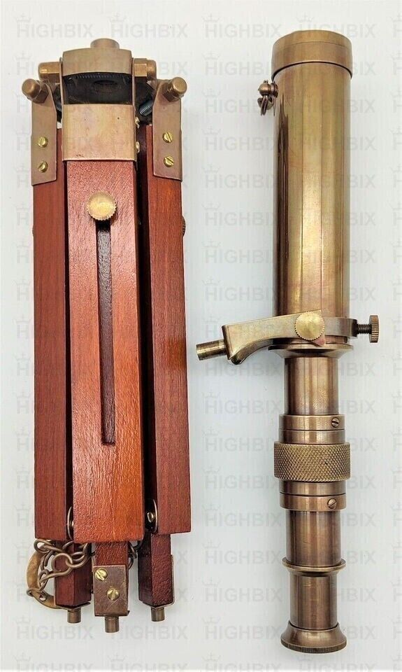 - Antique Finish HIGHBIX 12" Brass Telescope With Adjustable Wooden Tripod Stand