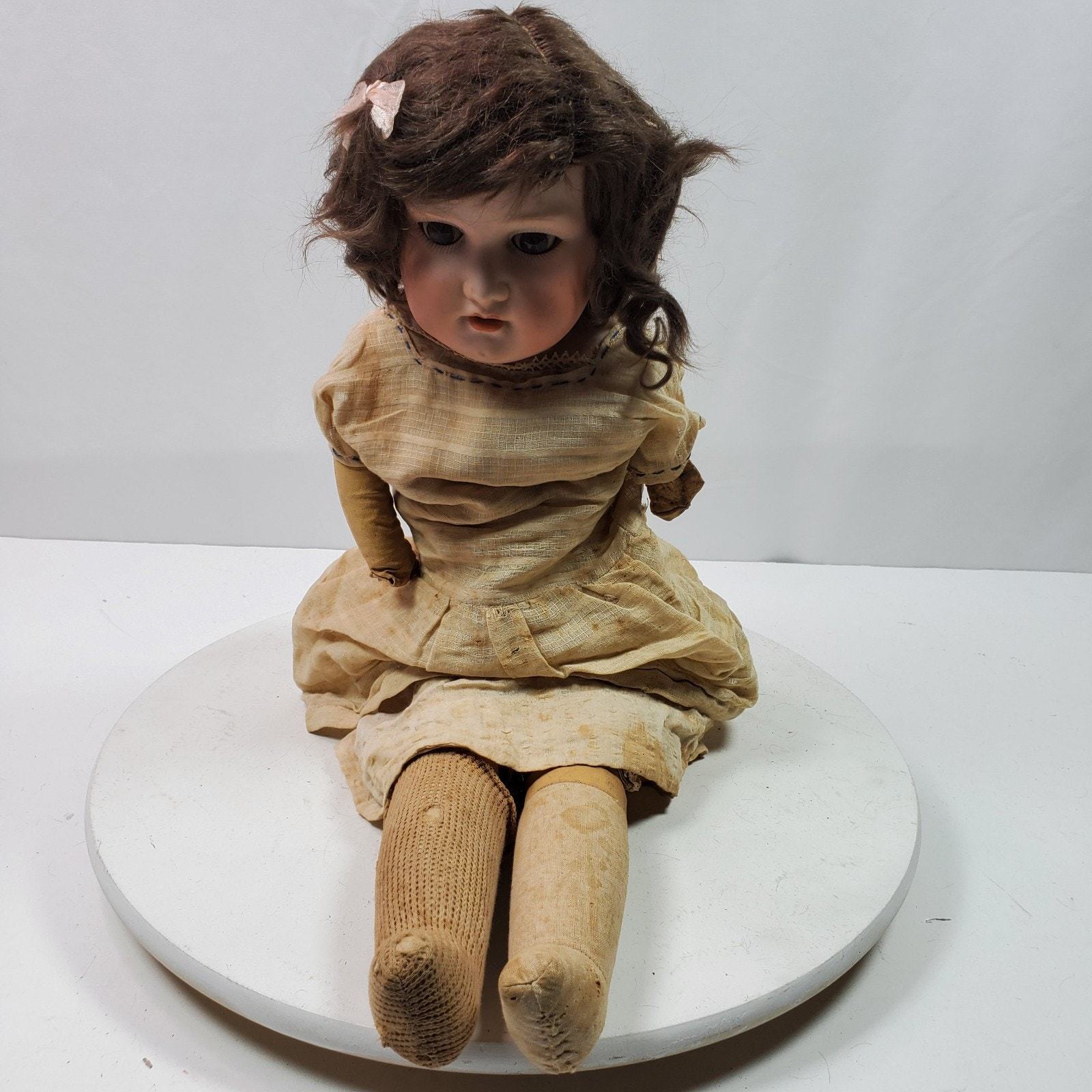 - Antique German 370 Bisque & Leather Doll VERY OLD 21 Inch