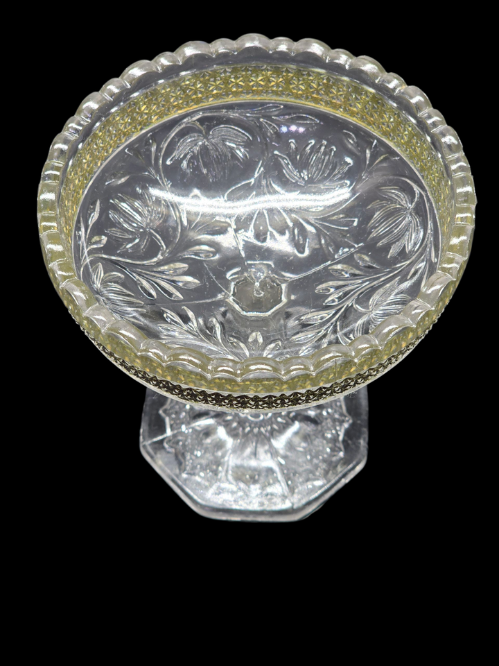 - Antique INDIANA GLASS 5" Open Compote ROSE POINT BAND Candy Trinket Dish - 1913