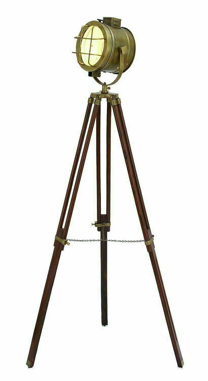 - Antique Industrial Studio Floor Tripod Light Stand Lamp Searchlight Standing