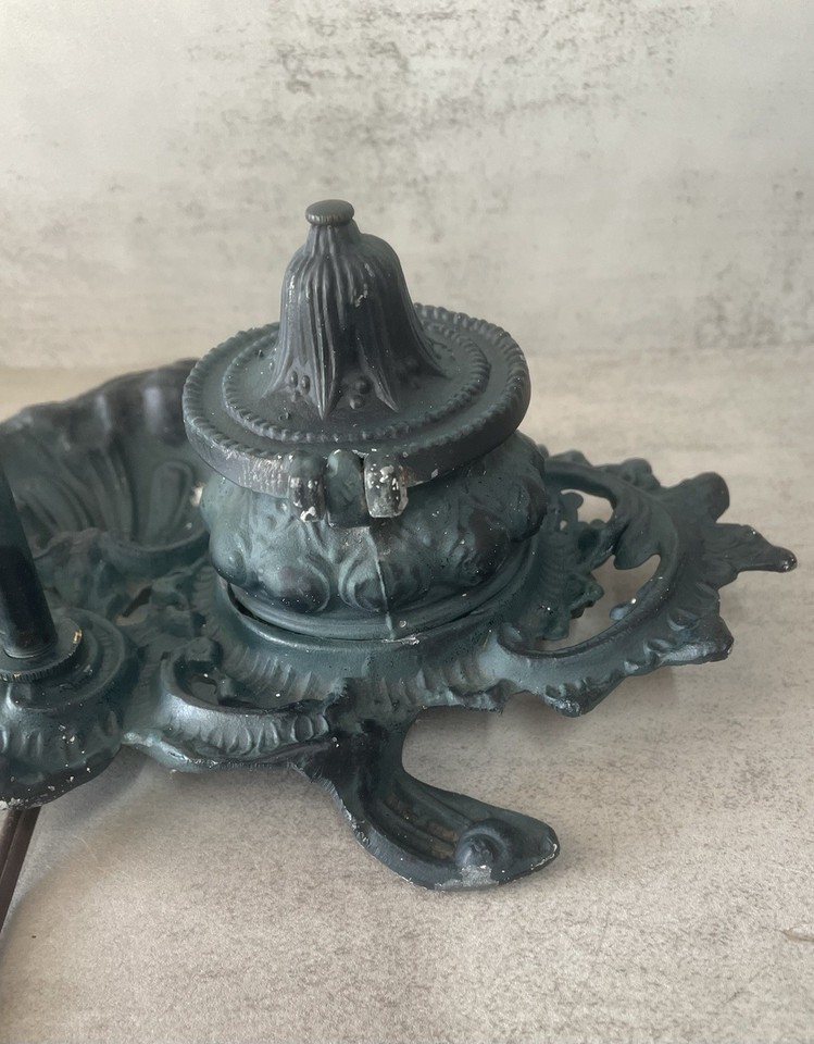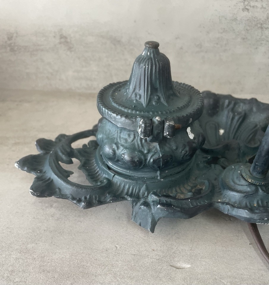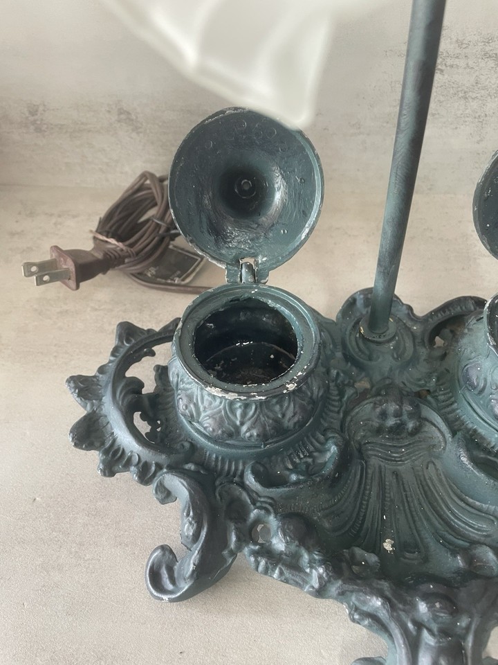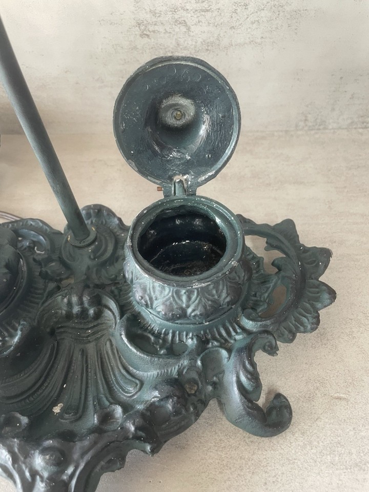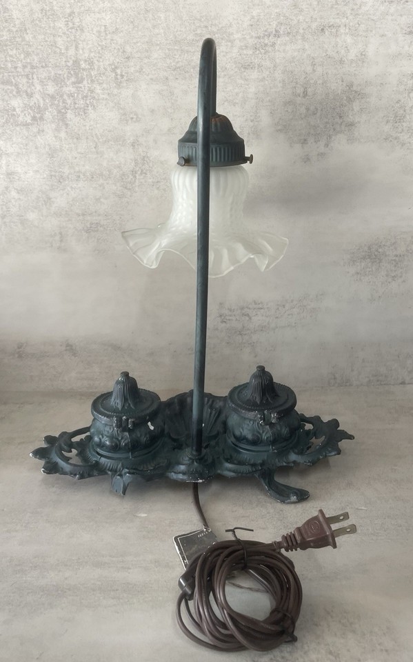 Antique Lamp w/Double Ink Well Victorian - Marked Brite Metal - Green – Working
