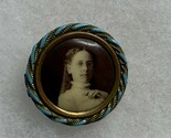 - Antique Mourning Brooch Pin Gold Tone, Turquoise Lady's Photo DATED 1900