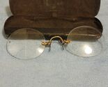 Excellent Condition Antique Nose Clip Rimless Gold Bifocals Glasses With Original Case Morison's Kansas. ***The metal case has wear on it. Please See Photos!*** SUPER FAST SHIPPING!