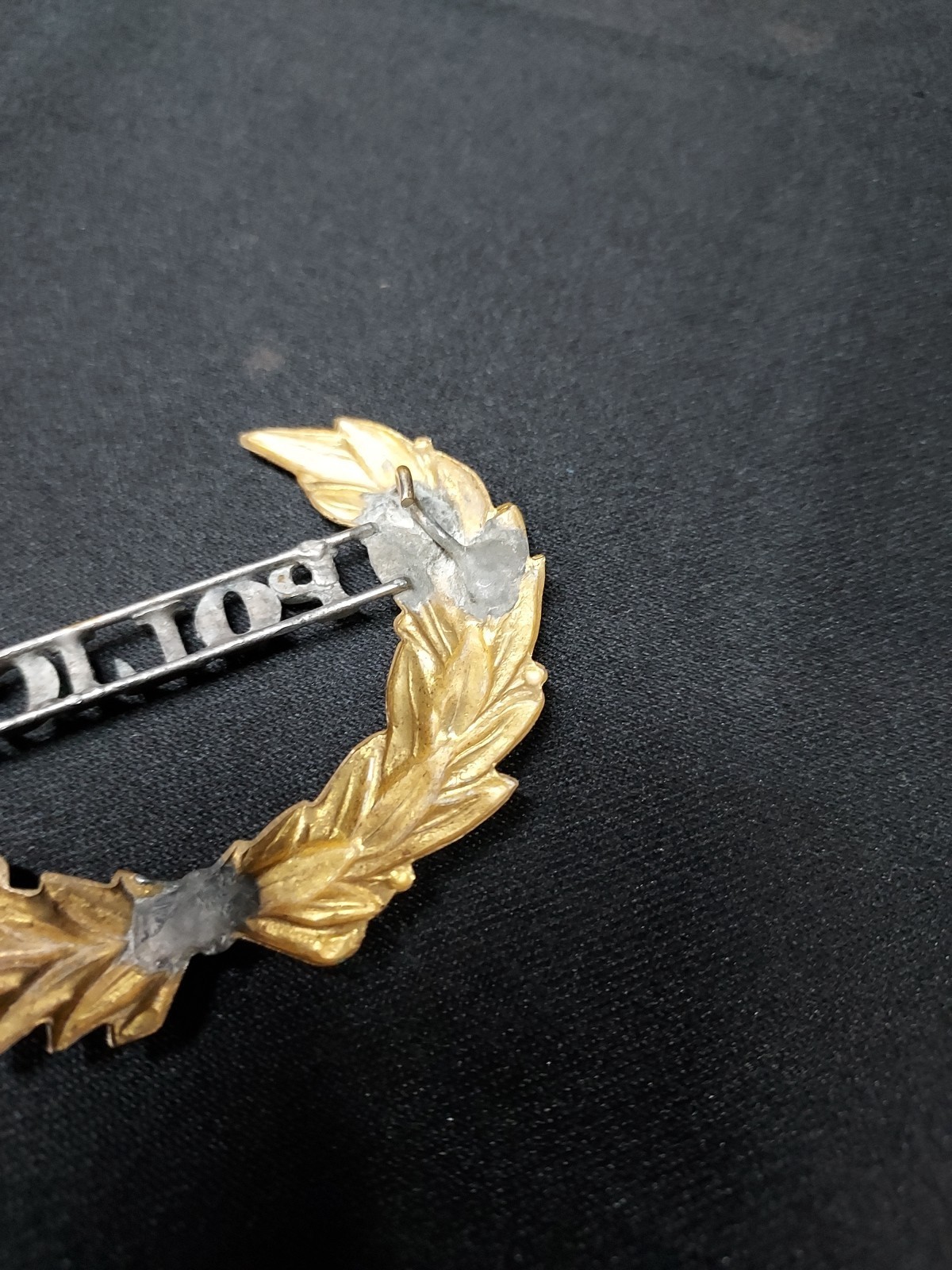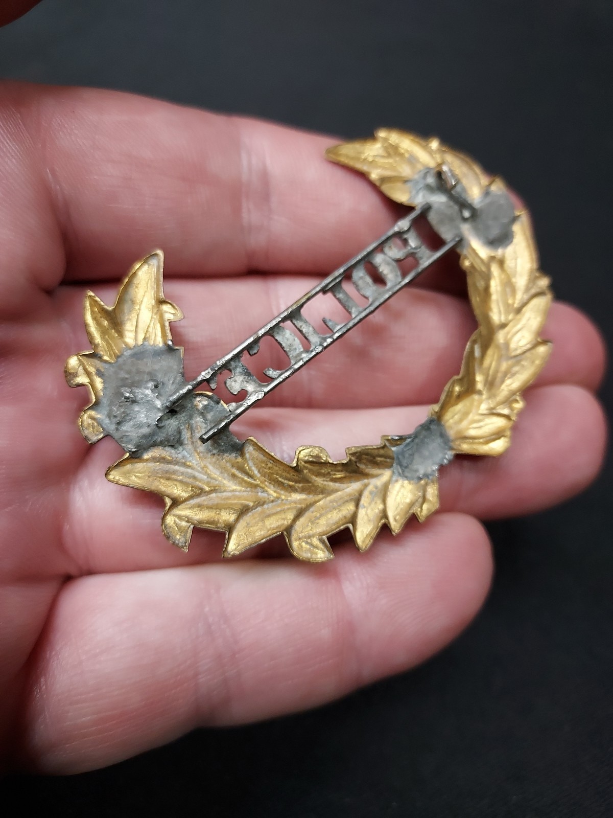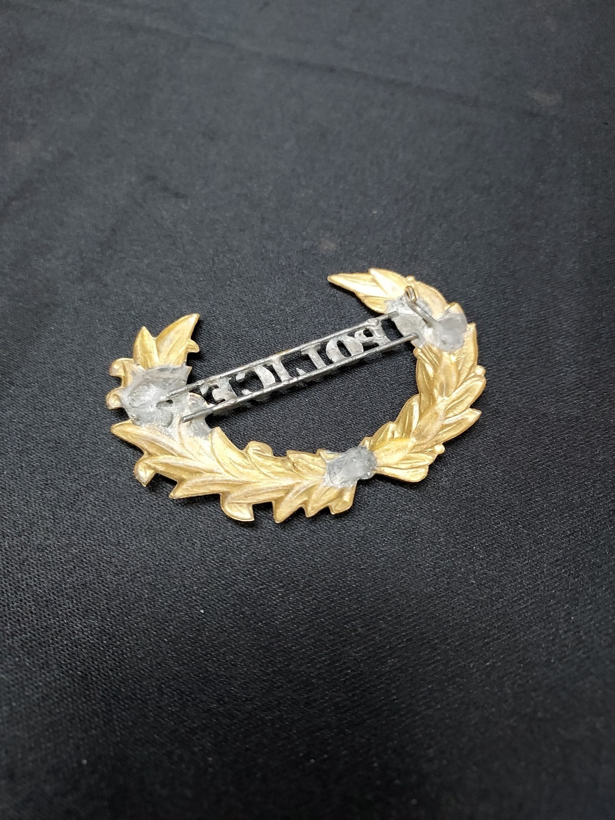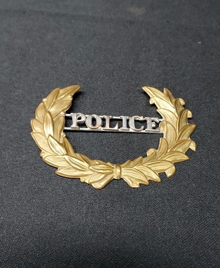 Antique POLICE Hat Cap Badge Pin Wreath Ca. 1900 Obsolete Original