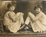 Antique Photograph Two Young Girls With Short Hair 1920s Maybe Buckle Boots