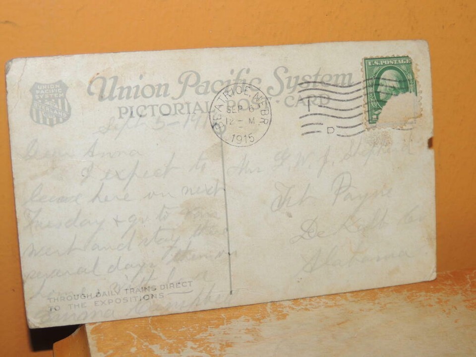 ONE POSTCARD, SENT BY EMMA CAMPBELL, BEATRICE NE TO MRS SHEPPARD, FORT PAYNE AL. PLEASE LOOK AT THE PICTURES, AS I AM NOT AN EXPERT. APPROXIMATE SIZE IS 5.5 INCHES BY 3.25+ INCHES SHIPPING IS BASED ON THE APPROXIMATE PACKAGED WEIGHT. I DO SHIP INTERNATIONALLY. USPS SHIPPING IS ONLY AVAILABLE WHERE TRACKING IS OFFERED, ALL OTHERS MUST BE SHIPPED FEDEX OR UPS. ALL TAXES, TARIFFS AND DUTIES ARE THE RESPONSIBILITY OF THE BUYER. RETURN POLICY: IF THE ITEM YOU RECEIVE IS IN SOME WAY MATERIALLY DIFFERENT FROM WHAT IS REPRESENTED HERE, I WILL GLADLY REFUND YOUR MONEY. MONEY WILL NOT BE REFUNDED BECAUSE OF MINOR FLAWS OR MISUNDERSTANDINGS. YOU MUST CONTACT ME PRIOR TO RETURNING ANY ITEM. IF THE ITEM IS NOT AS DESCRIBED, I WILL REFUND THE FULL PRICE, PLUS SHIPPING AND RETURN SHIPPING. This listing created with GLETech Multiple Selling Channel tools.